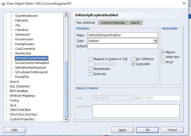 Very first we have to add 4 transient attributes to the VO as below. one is for RMA number and other for customer comments enable/disable:one is for RMA number and other for customer comments required/non required